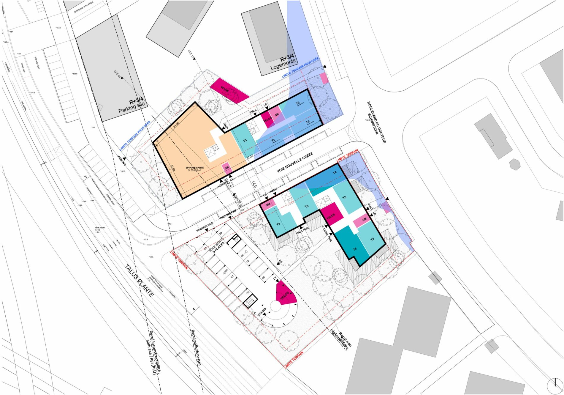 82 logements Collectifs et un parking silo