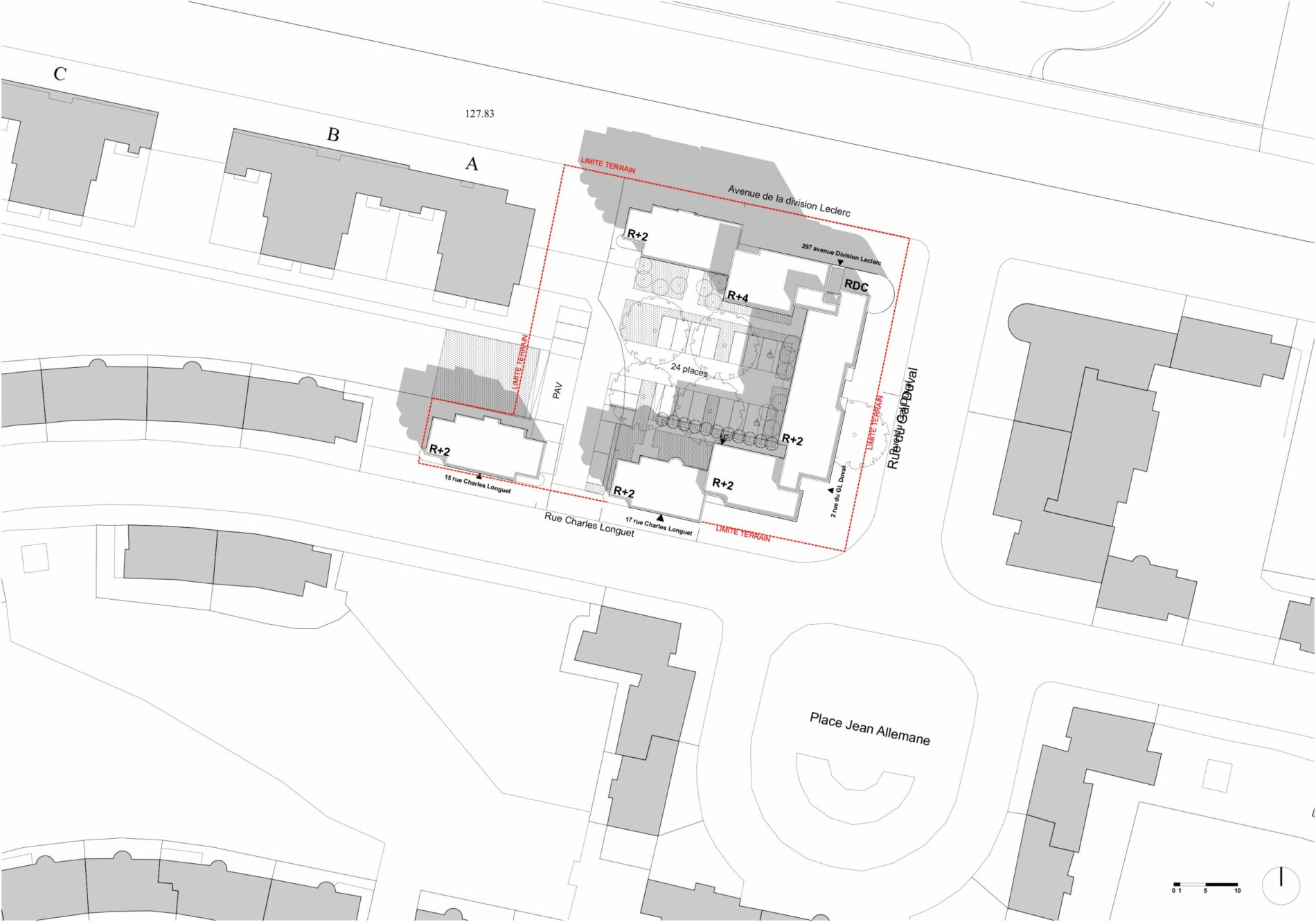 35 Logements: SP 2 232 m² / SHAB 2 096 m²