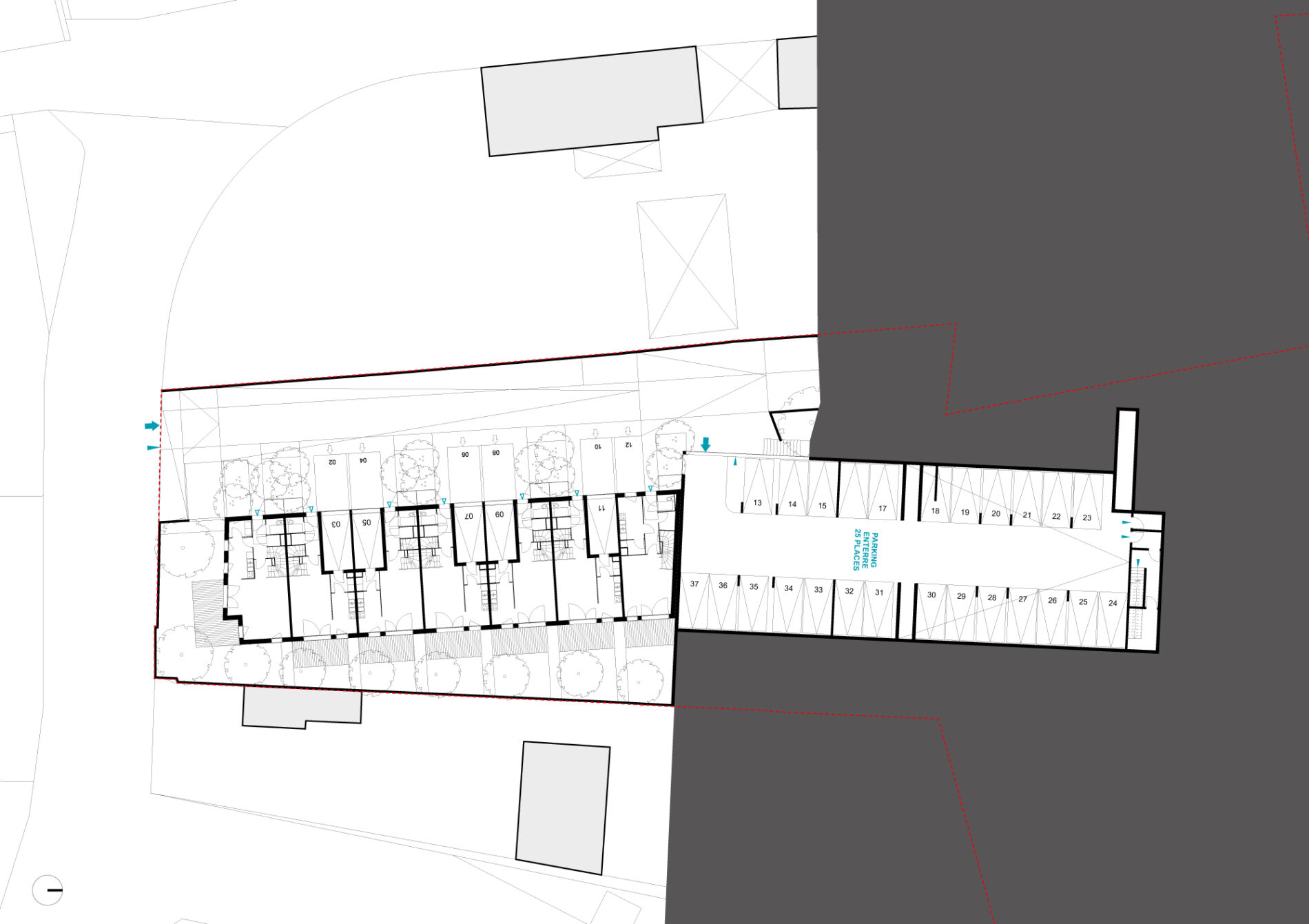 21 logements collectifs - 7 logements individuels - parc de stationnement semi enterré de 24 places