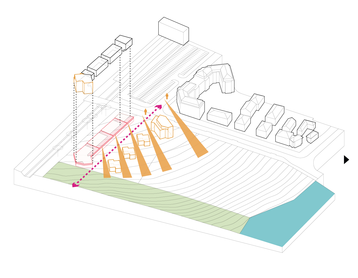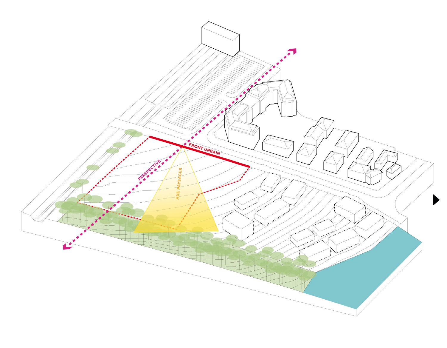 principes de projet:s'implanter selon deux axes